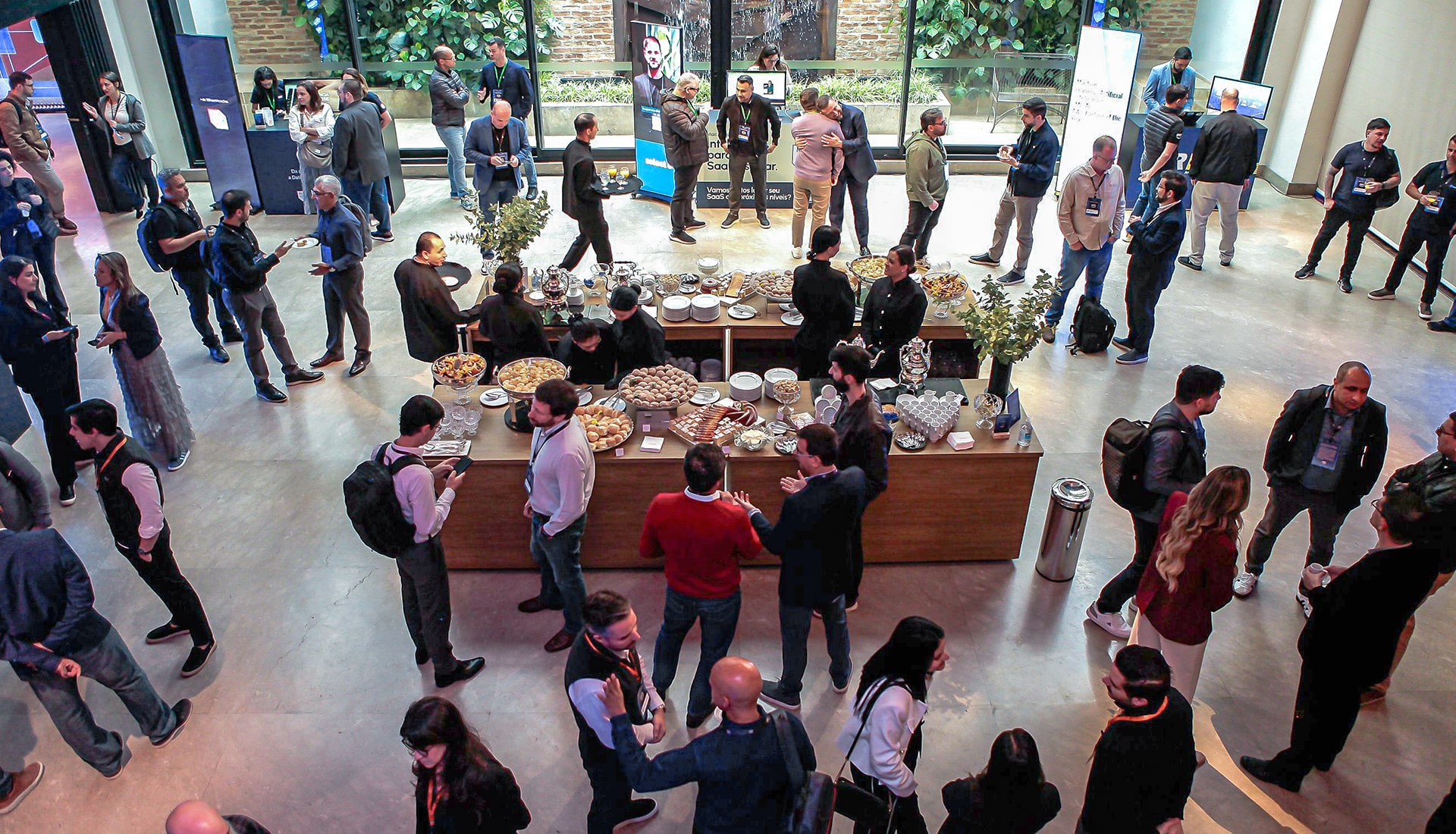 O ambiente do evento traduziu a imersão no universo SaaS em cada detalhe. Criamos uma identidade cenográfica que uniu peças físicas e digitais, com totens, save the date, painéis e elementos interativos que ampliaram a experiência de marca e refletiram o equilíbrio entre humano e tecnologia.