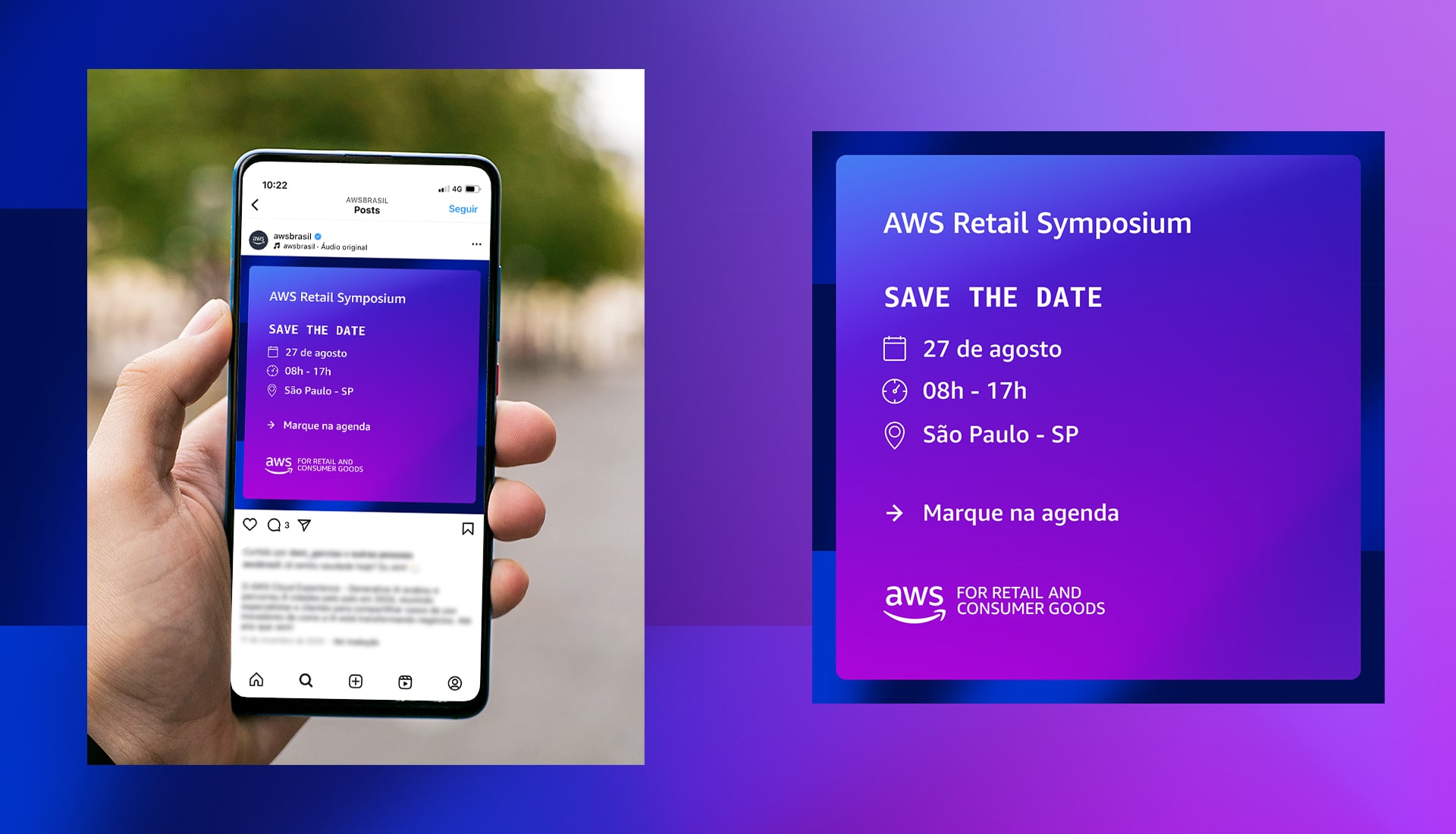 Em uma nova parceria de eventos com a AWS para o Retail Symposium 2025, o desafio foi traduzir os conceitos do varejo conectado em uma aplicação completa, dando ênfase para que as peças se destacassem entre os anúncios de eventos simultâneos da marca no mesmo período.